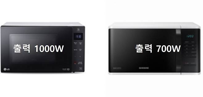 현재 판매되고 있는 전자레인지의 출력은 대부분 700W와 1000W로 두 가지로 나뉘는데,