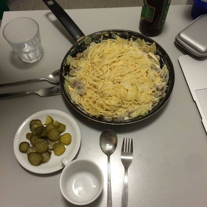 제일 만만한건 파스타 만들기, 쉽고 파스타 면도 굉장히 저렴해서 주 메뉴였습니다 무엇보다 맛있잖아요...ㅎ 크림, 로제, 알리올리오, 토마토 여러 가지를 해 먹었네요.프라이팬 한가득해서 영화 보면서 먹으면 세상을 다가진 기분 ㅋ