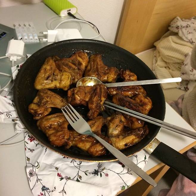 사실 대단한 요리는 아니기도 하고 빨리 먹을 수 있는 요리들을 위주로 했기 때문에 어렵지는 않았어요! 그리고 전학기 친구가 밥솥을 놓고 가줘서 정말 편하게 밥을 먹을 수 있었습니다. 헤헷
