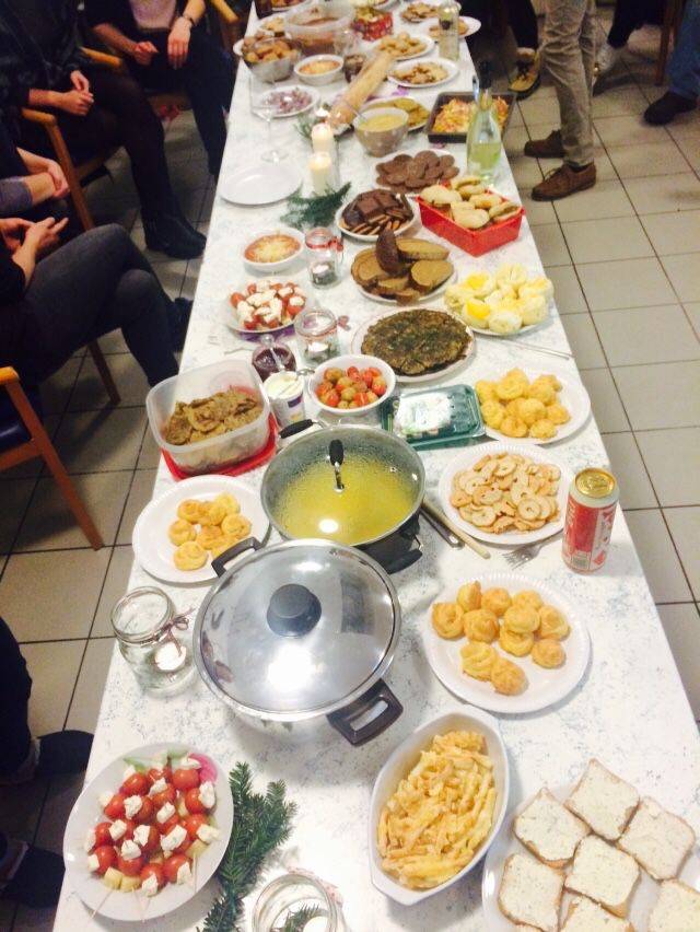 겨울에 제일 큰 파티는 크리스마스 파티였는데요 조촐하게 친구와 한 번 크게 기숙사 친구들 전체가 모인 파티가 있었습니다.