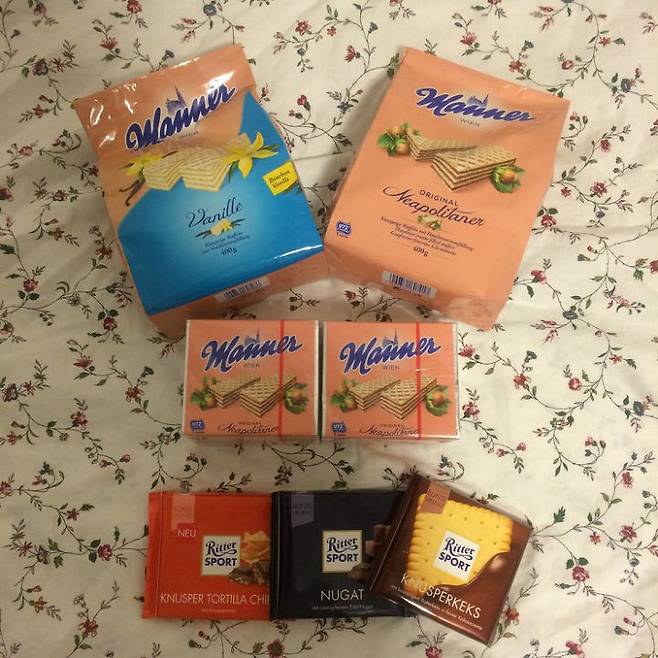 오스트리아 대표 과자 마너스는 우리나라 웨하스랑 비슷하지만 양도 혜자스럽고 더 달달하다구요... 그리고 독일 초콜릿 리터스와 밀카는 먹어도 먹어도 질리지 않는 맛. 모든 맛을 먹어보지 못해 슬픕니다..