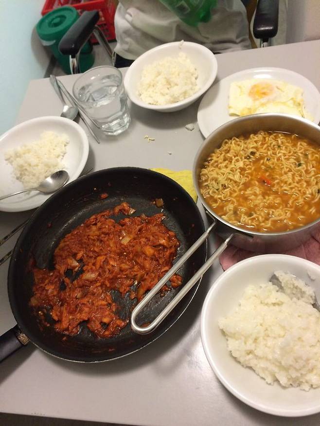 사실 대단한 요리는 아니기도 하고 빨리 먹을 수 있는 요리들을 위주로 했기 때문에 어렵지는 않았어요! 그리고 전학기 친구가 밥솥을 놓고 가줘서 정말 편하게 밥을 먹을 수 있었습니다. 헤헷