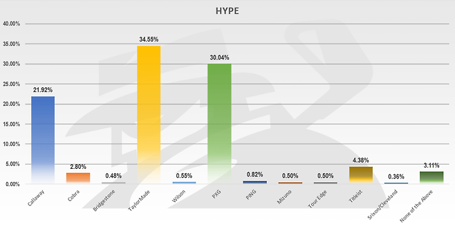 골프장비 업계에서는 가끔 “성능”의 정반대 단어로 통하며, 여러분의 반응은 확고했습니다. 과대 광고라는 단어에 거의 35%의 사용자가 TaylorMade를 지목했으며, PXG (30.04%)와 Callaway (21.92%)를 합하면 총 85% 이상을 넘었습니다.