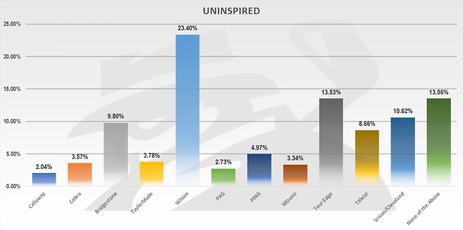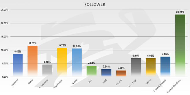 전반적으로 적은 선택율을 보였지만 약간 더 긍정적인 비율의 Cobra, Bridgestone, Srixon/Cleveland는 소비자의 무관심을 의미한다고 생각합니다. 분명 인기차트의 하위는 아니지만, 그렇다고 상위에 있는것도 아닙니다. 그것이 장기적으로 무엇을 의미하는지는 아직 모르겠지만, 정체된 시장과 치열한 경쟁 사이에서는 결코 좋은 것은 아닙니다.