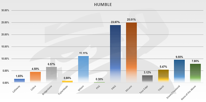 Callaway의 시장 리더 포지션을 감안하면, 거의 30%의 응답률은 그리 놀랍지 않습니다. 25.81%를 기록한 Titleist는 볼 시장의 리더 포지션이 기인한 것으로 보입니다. 중소 브랜드 중에서는 Mizuno가 가장 많이 선정되었습니다. 일반적으로 참여자분들의 응답은 시장의 현실에서 크게 벗어나지 않았습니다.