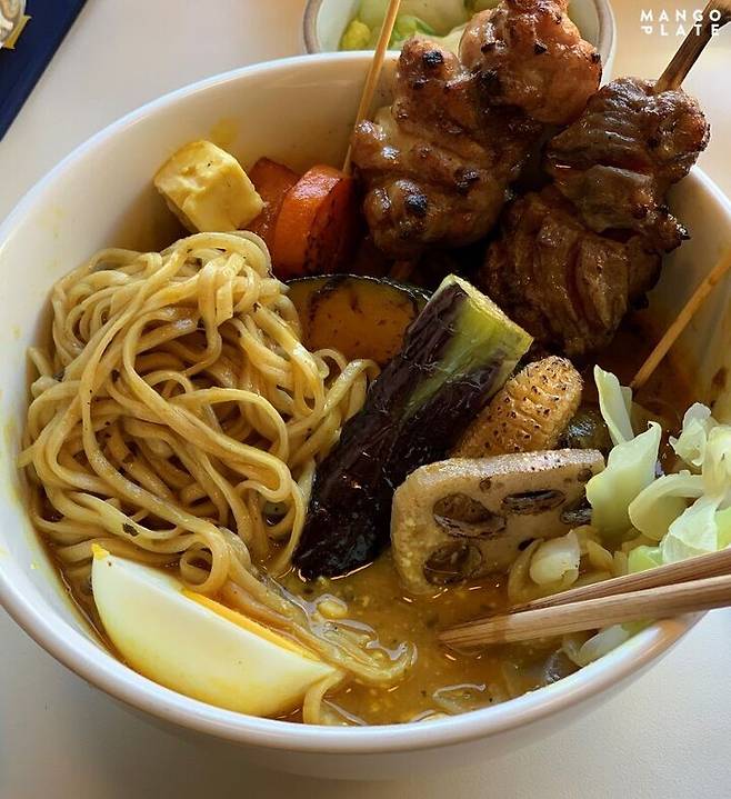 면은 홍대 라멘 맛집으로 유명한 '하나 모코 시'에서 수프 카레에 특화된 면을 따로 제작하여 공수받고 있다고 해요. 쫄깃한 면발이 아주 끝내준답니다.