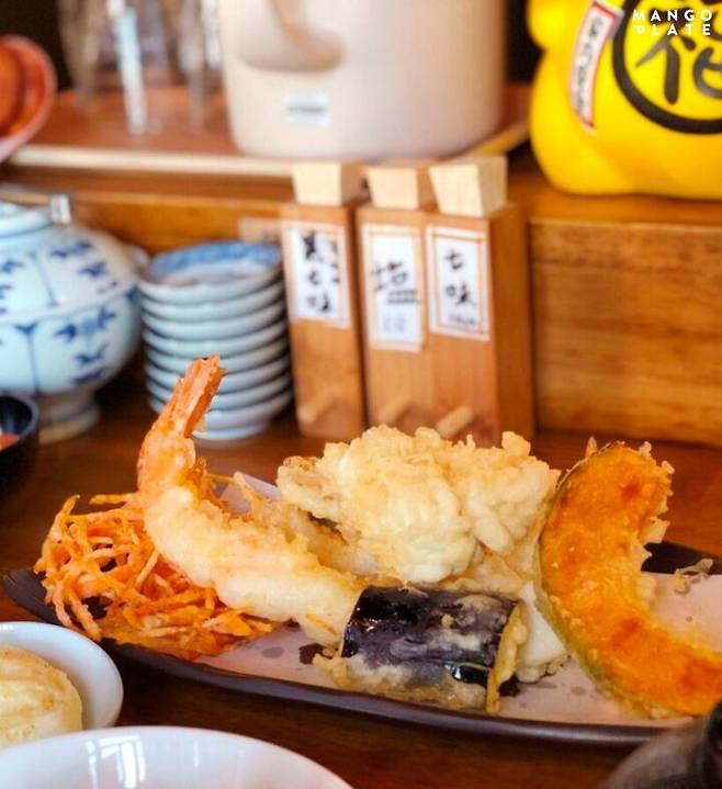 이곳은 정식을 주문하면 튀김이 1차, 2차 두 번에 나뉘어 제공되는 점이 가장 큰 특징이에요. 한 번에 튀김이 나온다면 식사 끝에 맛보는 튀김은 조금 식을 수 있을 텐데, 두 번 나뉘어 나와 갓 튀긴 튀김을 맛볼 수 있답니다.