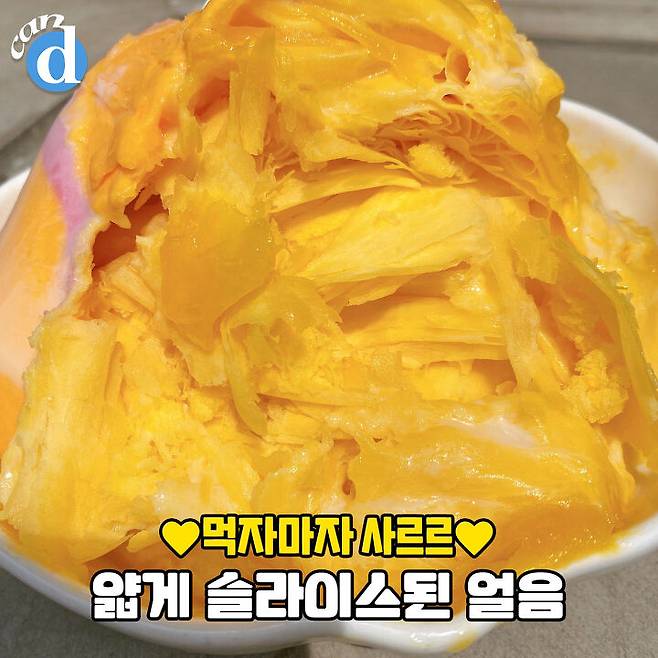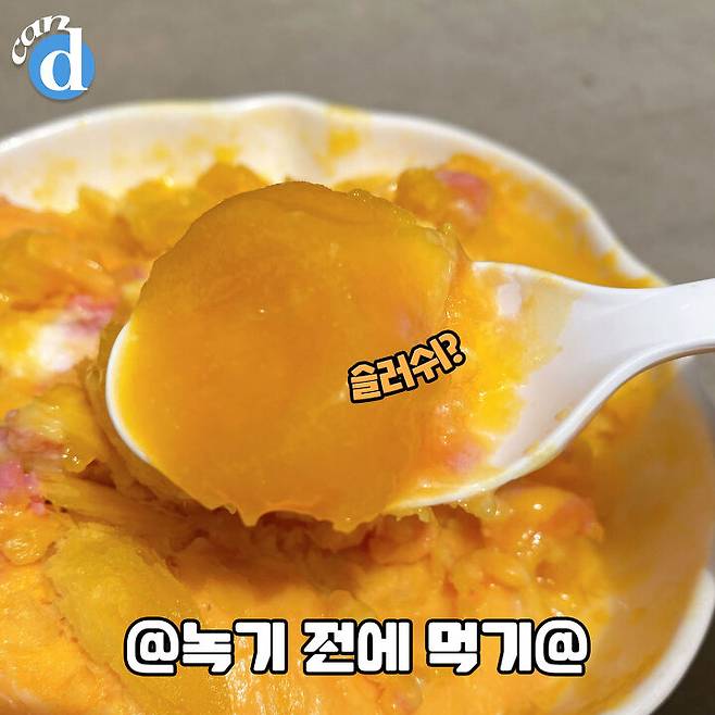 살짝 녹으니 슬러시 재질로 바뀌어버리는 망고 얼음.