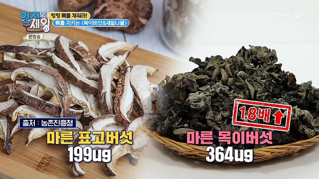 목이버섯에는 표고버섯의 1.8배에 해당하는 양의 비타민D가 들어있는데요.