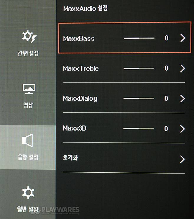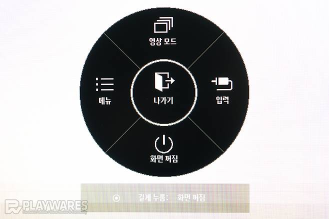 OSD 메뉴가 출력되지 않은 기본 상태에서 조그 버튼을 좌/우측으로 밀면 시스템 볼륨을 조절할 수 있으며... 조그 버튼 누르기, 사용자 기준에서 바깥쪽으로 밀기 또는 안쪽으로 당기기 동작을 수행하면 아래와 같은 OSD 메뉴가 호출됩니다.