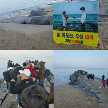 빨간목도리와 꽃다발을 빌려준다고 하네요.