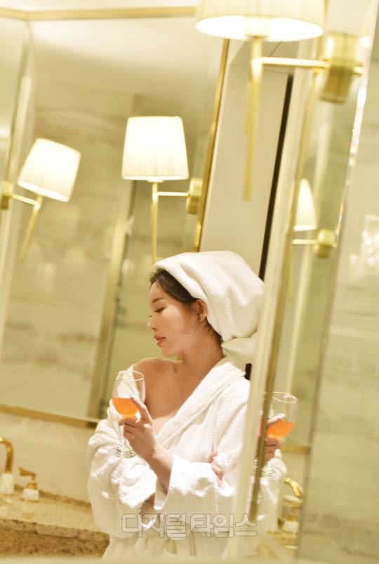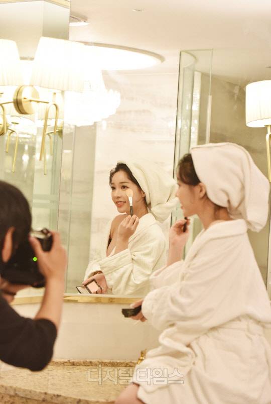 유튜버 '아리샤'(본명 고규림)가 부산 해운대에서 진행된 화보 촬영 현장에서 포즈를 취하고 있다.