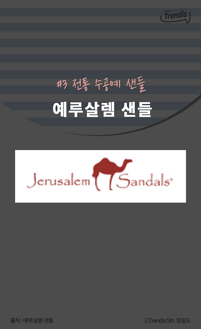 첫 번째로 추천할 ‘예루살렘 샌들’의 제품은 ‘더 굿 셰퍼드야’! 여름 슬리퍼로, 착용한 사람의 발 모양에 따라 편하게 모양이 변해 착화감도 좋고 내구성도 굉장히 좋은 편이야. 밋밋하지 않은 예쁜 디자인으로 많은 사랑을 받고 있는 ‘더 굿 셰퍼드’ 였어!