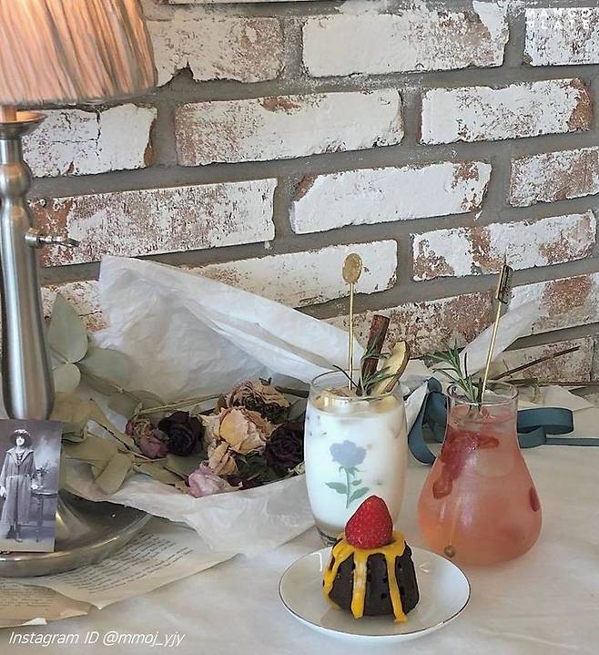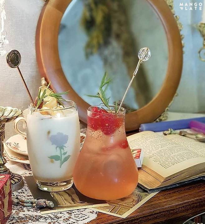 앤티크하고 센스 있는 소품들로 예쁘게 꾸며져 예쁜 음료와 함께 감성 샷 남기기 좋은 곳. 시나몬 스틱과 사과가 들어간 애플 시나몬 라테와 함께 가을 공기 만끽하기!