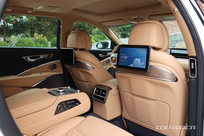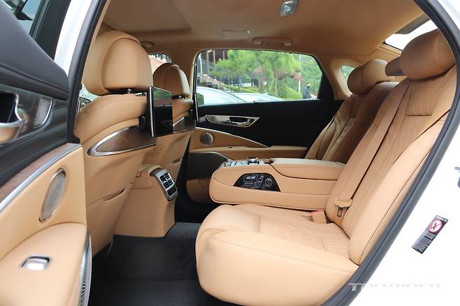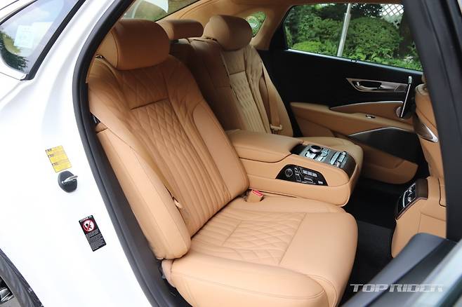 시트는 허리 받침과 쿠션까지 퀼팅 패턴을 확대해 고급스러운 감각이다. 운전석과 후석 우측 좌석(VIP 석)에는 스트레칭 모드를 지원하는 에르고 모션 시트가 적용됐다. 2열 듀얼 디스플레이에는 터치 스크린 기능이 포함됐다. 2열 파워시트는 열선 및 통풍을 지원한다.