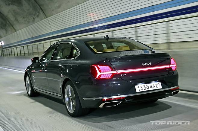 다만 주행 모드 스마트에서 자동으로 활성화되는 전방 예측 변속 시스템의 완성도가 높아 다른 주행 모드를 사용할 필요성이 줄어들었다. 더 뉴 K9에는 전면 윈드쉴드와 도어, 후면부 유리창까지 차음 글래스가 적용돼 실내 정숙성이 개선됐지만, 풍절음은 K5와 유사하다.