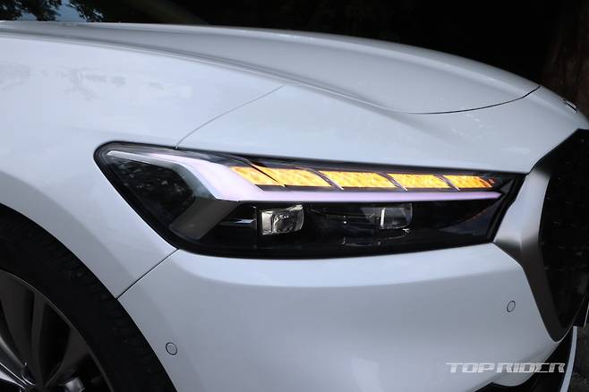 단단하게 조여진 서스펜션과 사륜구동 특유의 안정감이 더해져 코너를 깊게 파고들 수 있다. 코너 탈출 성능도 수준급이지만, 연속된 코너링에서는 5140mm에 달하는 전장과 3105mm의 휠베이스가 체감된다. 역동적인 전면부의 움직임을 후면부가 쫓아오지 못한다.