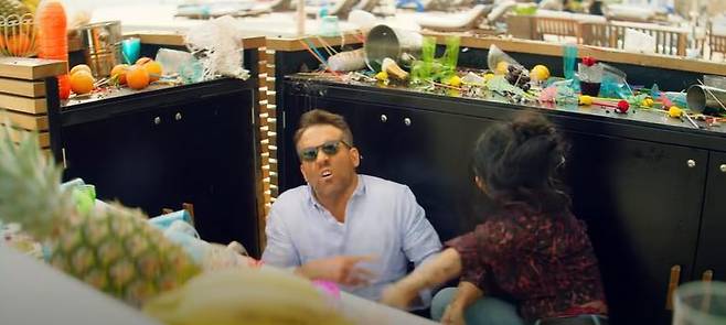 그리고 영화는 주인공 부부로 인해 생기는 난장판과 그로 인해 계속 의도치 않는 피를 보는 마이클의 '개고생'을 보여주며 이번 영화 역시 엄청난 액션과 세 배우의 입담 넘치는 유머가 함께하는 영화가 될 것이라 예고한다.