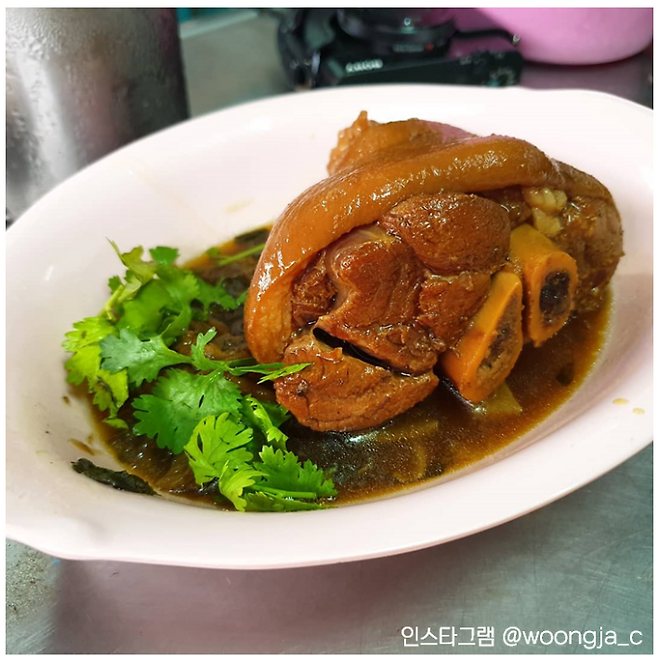 돼지다리에 약재와 소스를 넣고 푹 고아