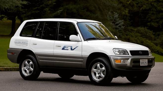 지금에야 전기 SUV라는 개념이 흔해졌지만 당시에는 아주 혁신적인 개념이었다. 1997년 출시되어 일본과 미국에서 판매된 토요타의 RAV4 EV는 세계 최초의 전기 SUV 타이틀을 획득했다. 이 차에는 27kWh 배터리 팩과 67마력 전기 모터가 앞 바퀴를 굴렸다. 최고속도는 시속 137km였으며 주행가능한 거리는 153km였다. 다만 정지상태에서 시속 100km까지 약 18초가 걸렸는데, 당시 다른 전기차들에 비해서 매우 떨어지는 수치였다고 한다.