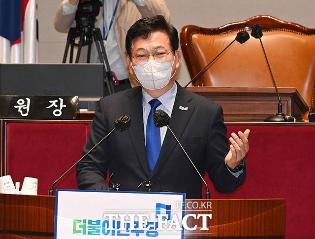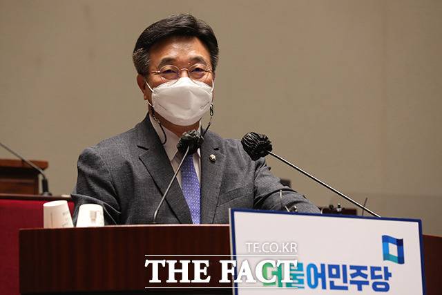 [더팩트ㅣ국회=이선화 기자] 송영길 더불어민주당 대표가 25일 오전 서울 여의도 국회에서 열린 의원총회에서 모두발언을 하고 있다.