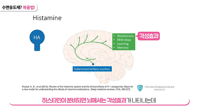 히스타민이 분비되면 뇌에서는 각성효과가 나타나는데 이를 막아서 졸음이 유발되는 원리입니다.