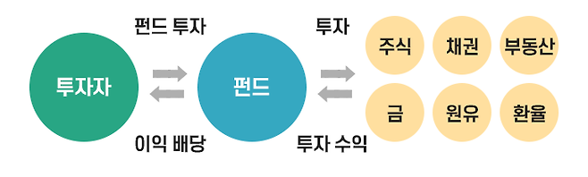 펀드는 국내주식이나 채권, 해외주식 및 해외채권, 부동산, 금, 원유, 환율 등의 다양한 자산에 투자하는 펀드가 많습니다.