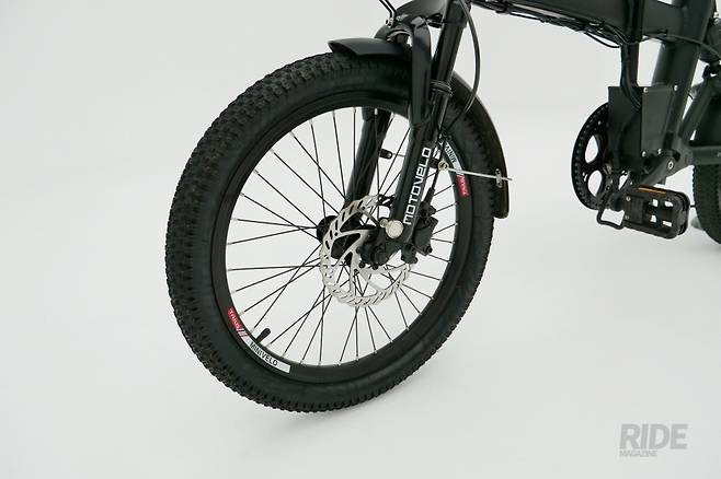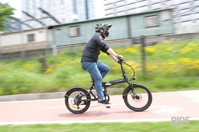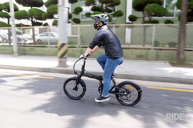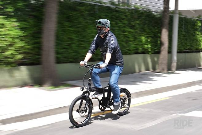 자전거 도로를 따라 나름 장거리 주행을 해봤는데 생각 외로 승차감이 좋아 서스펜션 부분에 좋은 점수를 주고 싶다는 생각이 들었다. 전 후방 고탄성 코일 서스펜션이 장착됐고 여기에 쿠션감이 좋은 두툼한 전립선 안장과 2.35인치의 타이어의 조합이 부드럽고 편안한 주행성능을 보여줬다. 아마도 미니벨로 방식의 이 같은 타입 전기자전거가 보여줄 수 있는 가장 편안한 주행감이 아닐까 싶다. 모터의 힘이 주행을 돕는 만큼 앞 뒤 브레이크도 앞뒤 유압식 디스크브레이크를 적용해 강력하고 빠른 제동이 가능했다.
