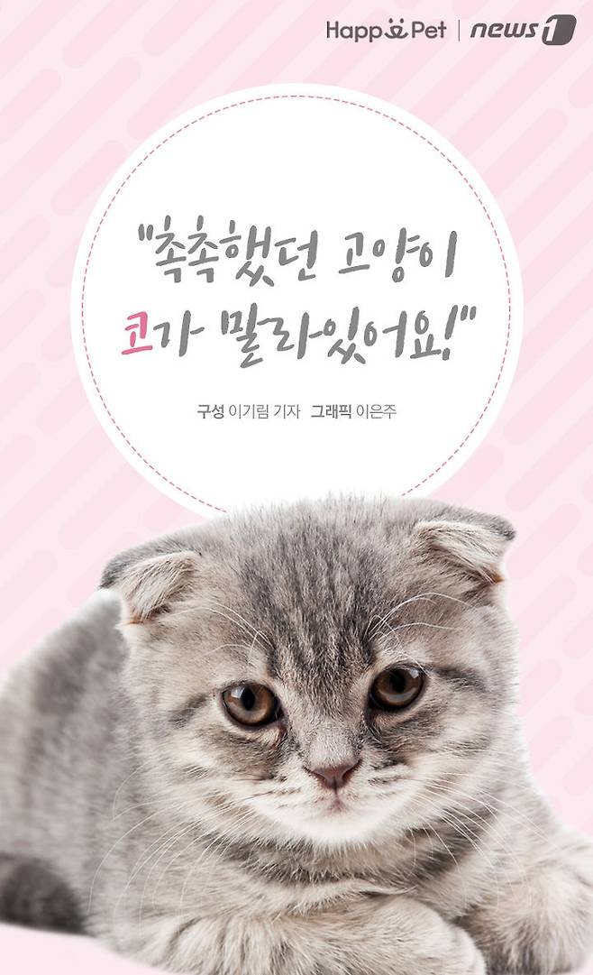 많은 집사들이 고양이를 키우면서 종종 코를 만진다. 촉촉하게 젖어있는 코의 촉감이 기분 좋을뿐만 아니라 귀엽기 때문이다. 그러나 고양이 코가 늘 촉촉하게 젖어있는 건 아니다. 말라있을 때도 있고, 끈적한 액체가 느껴질 수도 있다. 고양이 코의 상태는 건강상태를 알 수 있는 바로미터이기도 하다. 충성스러운 집사라면 고양이 코 상태에 대한 기본 지식을 갖춰보자.