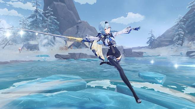 신규 얼음 속성의 '유라'는 5성의 캐릭터로, 빙결 원소의 힘과 함께 검을 휘두르며 광역 대미지를 가하거나 원소 전투 스킬, 원소 폭발 등을 통해 경직 저항력을 올릴 수 있다.