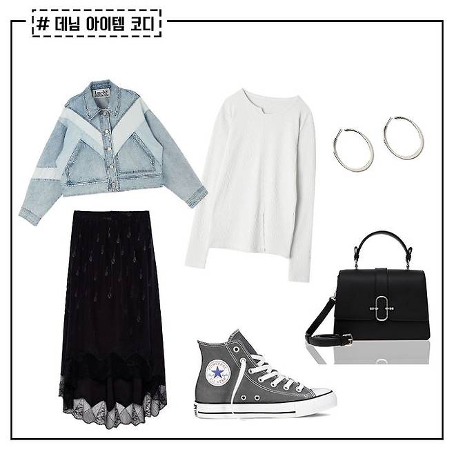 롱스커트와 함께 길이감이 짧은 데님 자켓을