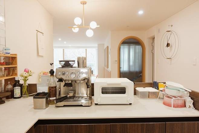 집의 크기에 비해 주방이 작게 빠진 스타일이라 제일 힘을 쓴 곳이 주방이라고 할 수 있어요. 요리를 좋아하는 저는 주방은 집의 꽃이라고 생각해요. 신랑과 먹는 저녁시간이 제일 행복하기도 하고요.