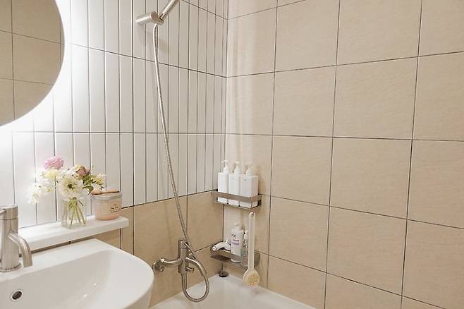 부부욕실은 외부인의 사용이 적은 만큼 확고한 저의 취향대로 만들었어요. 신랑은 늘 사우나가 생각 나는 곳이라면서도 내심 마음에 들어 하는 것 같아요.