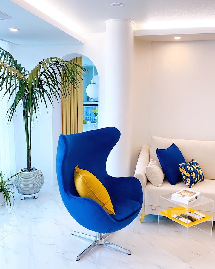 미니멀한 거실을 위해 소파 외에 다른 가구는 들여놓지 않았어요. 그래서인지 소파를 제일 오랜 기간 고민하며 골랐던 기억이 나요. 패브픽을 좋아하지만, 반려견과 함께 살고 있어서 고민인 부분이었거든요. 반갑게도 편안하면서 발수력이 좋고, 진드기 방지가 되는 패브릭 소파를 만나게 되어 치즈에게는 간식 먹는 장소가, 신랑에게는 누워서 편히 TV를 보는 가장 오랜 시간을 보내는 장소가 되었어요.