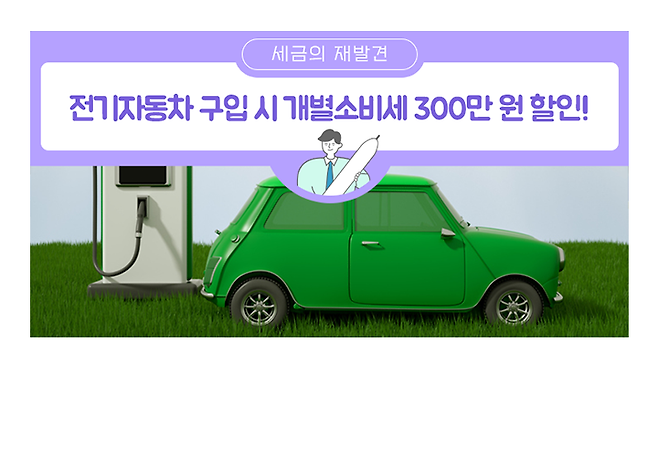자동차 구입을 계획하고 있다면 지금이 기회! 개별소비세 인하 혜택 받고, 친환경 자동차 세금 감면 혜택도 받고! 알뜰 소비하세요.