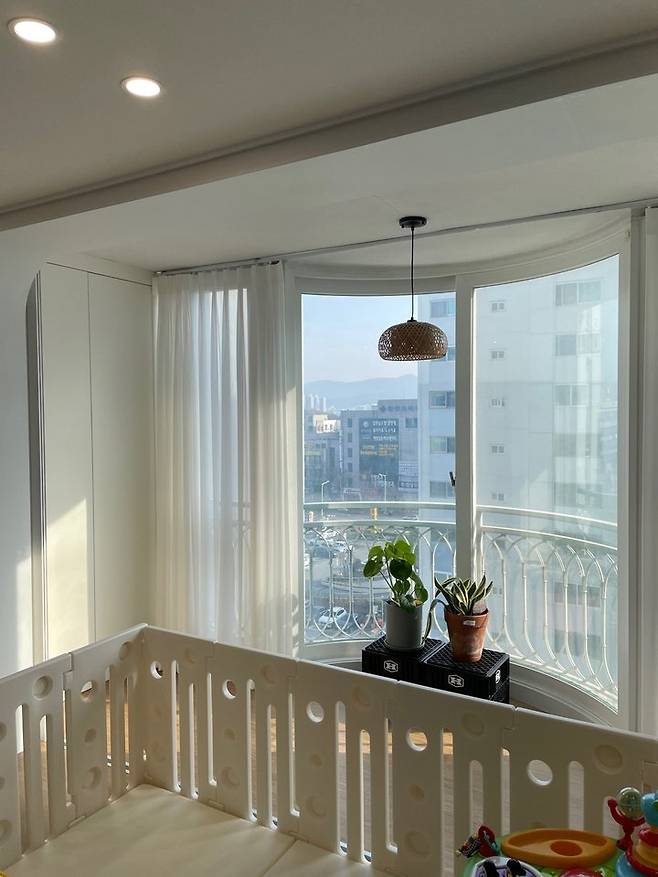 정남향이라 안쪽 동인데도 하루종일 해가 거실 깊숙이 들어와요. 처음 집을 보러 갔을 때에도 햇살이 너무 좋았던 기억이 나네요. 이사를 결정하기까지 정말 많은 집을 보러 다녔는데 조용한 안쪽 동이라 마음에 들었고 무엇보다도 햇살에 반해서 이 집을 선택했습니다.