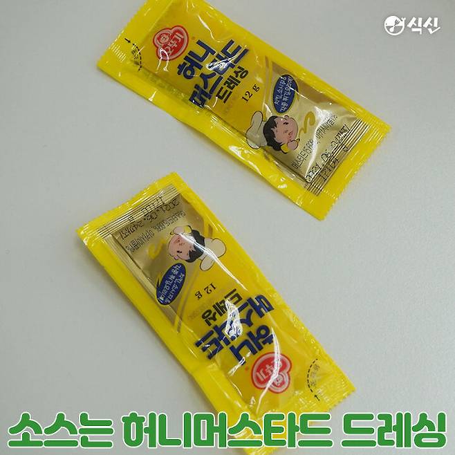 허니 머스타드 드레싱 소스를 1개씩 준다.