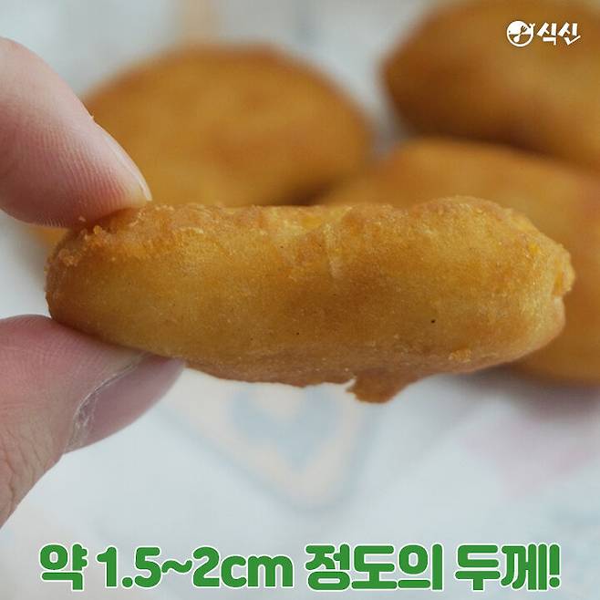 두께는 약 1.5~2cm 정도로 일반 너겟과 비슷함.