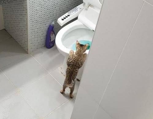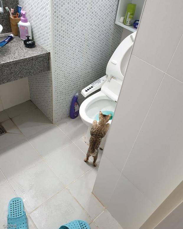 애들 앞에선 물도 조심히 마시라던데, 이제 새끼 고양이 앞에선 변기 물도 조심히 내려야 할 것 같다.