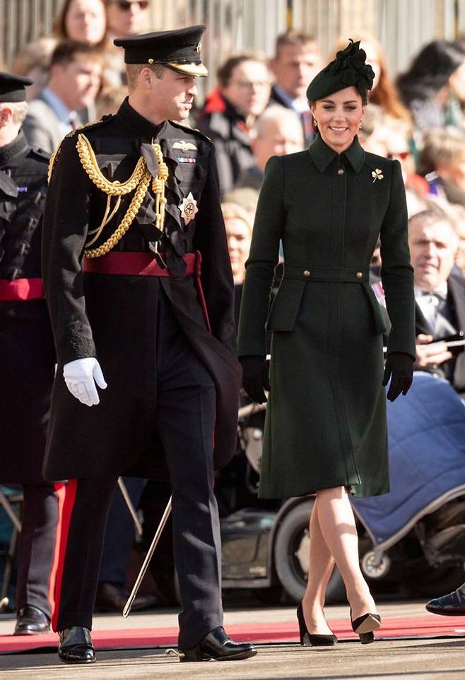 8. 2018년 3월에 열리는 '성 페드릭 데이 축제'에 윌리엄 왕자는 함께 참석한 임신한 케이트 미들턴이 에메랄드 그린 코트를 입고 있다.