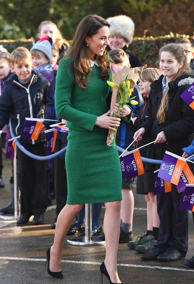 17. 2017년 1월 자선단체 '이스트 앵글리아 칠드런 호스피스에 참석한 케이트 미들턴은 에메랄드 그린 슈트를 착용했다.