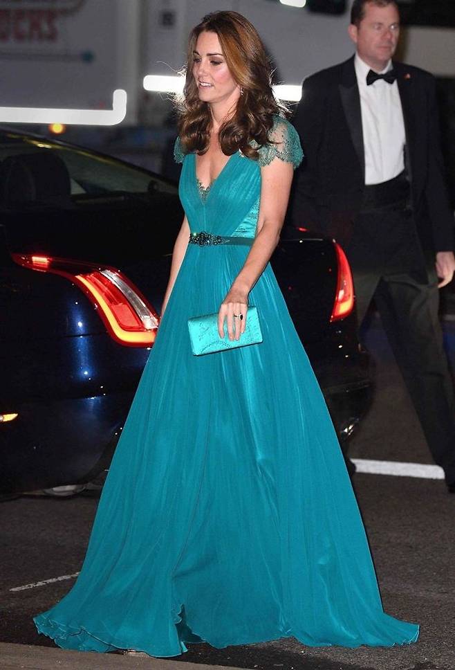 7. 2018년 11월 케이트 미들턴은 상아보존상 시상식에 참석하기 위해 제니 팩햄의 청록색 드레스를 다시 입고 여기에 깔맞춤한 클러치 백을 들었다.