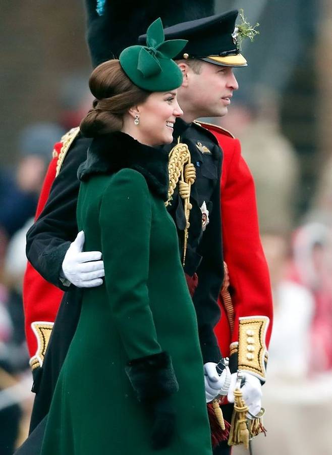 3. 지난 3월 17일 일요일 윌리엄 왕자와 함께 성 패트릭데이 퍼레이드에 참석한 케이트 미들턴은 알렉산더 왕의 맞춤 그린 코트를 입었고 모자와 클러치, 에메랄드 그린으로 깔맞춤했다.