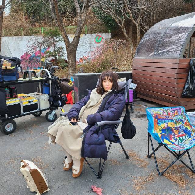 함께 공개된 사진 속에는 '산부인과로 가는 길' 촬영 중 쉬고 있는 박하선의 모습이 담겼다. 박하선은 얼굴에 상처 분장을 한 채 카메라를 응시하고 있다. 촬영에 지친 박하선은 자신의 모습을 손현주의 '거지짤'로 표현해 웃음을 안겼다.