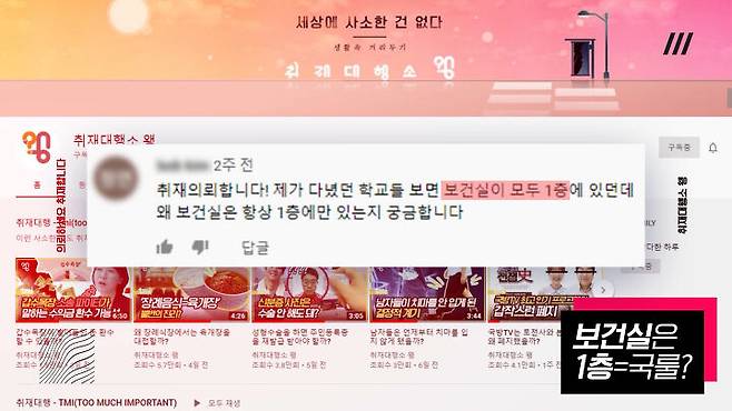실제 왱 커뮤니티나 영상에 달린 댓글을 봐도 2층이나 3층 등에 보건실이 있는 학교가 적지 않은 것 같다.