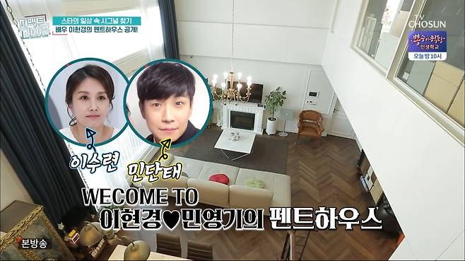 이현경과 남편 민영기의 러브 하우스도 공개됐다. 넓은 복층 구조의 펜트하우스에 이성미는 "심수련 아니고 이수련"이라며 감탄했다. 이현경은 홀로 국과 반찬만으로 30분간 식사했다. 밥 대신 두부를 택한 그는 "생활 속 다이어트다. 아이와 남편과 먹을 때와 달리 혼자 먹을 때는 탄수화물을 적게 먹으려고 한다. 혼자 있을 때만이라도 관리하려고 한다"고 설명했다.