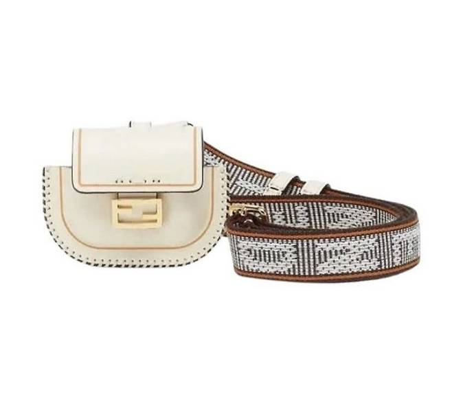 골드 컬러로 마감된 FF 로고와 유니크한 감성을 담은 스트랩이 특징인 펜디 '헤드폰 홀더'입니다. 귀여우면서도 스타일리시한 매력을 동시에 즐길 수 있습니다. 가격은 88만 원