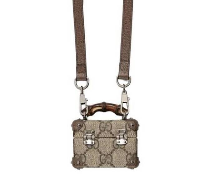구찌 '에어팟 케이스'는 브랜드를 상징하는 GG 모노그램이 도드라지는데요. 뿐만 아니라 미니어처 핸들과 탈부착이 가능한 스트랩을 부착하여 다양한 방식으로 연출할 수도 있답니다. 가격은 165만 원.