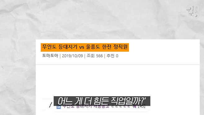 “무인도 등대지기는 어떻게 뽑는지 취재해 달라”는 의뢰가 들어와 바닷가 등대를 관리하는 지방해양청 항로표지과에 물어봤다.