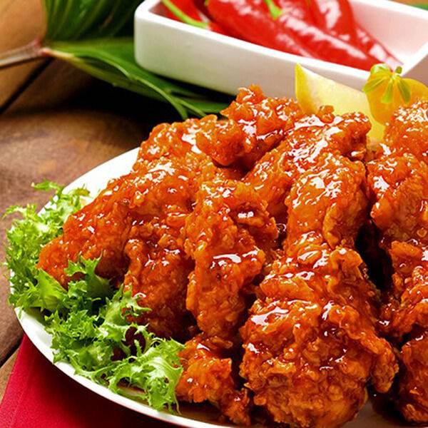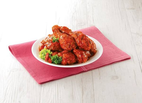 대한민국 양념치킨의 대명사로 불리는 '처갓집'. 오랜 시간 사랑받아온 치킨 브랜드로 그동안의 노하우를 살려 내놓은 야심작 '매운 불 양념치킨'이 매운맛 덕후들의 극찬을 받고 있다. 순수 국내산 청양고추를 사용해 뒷맛이 개운하고 깔끔한 매운맛을 내는 것이 특징이며, 오메가3를 강화하여 건강까지 겸비했다. 치킨에 떡도 들어 있으며, 양념이 찐득하니 진하고 살코기 속까지 찍어 먹을 수 있을 정도로 소스가 넉넉하다.